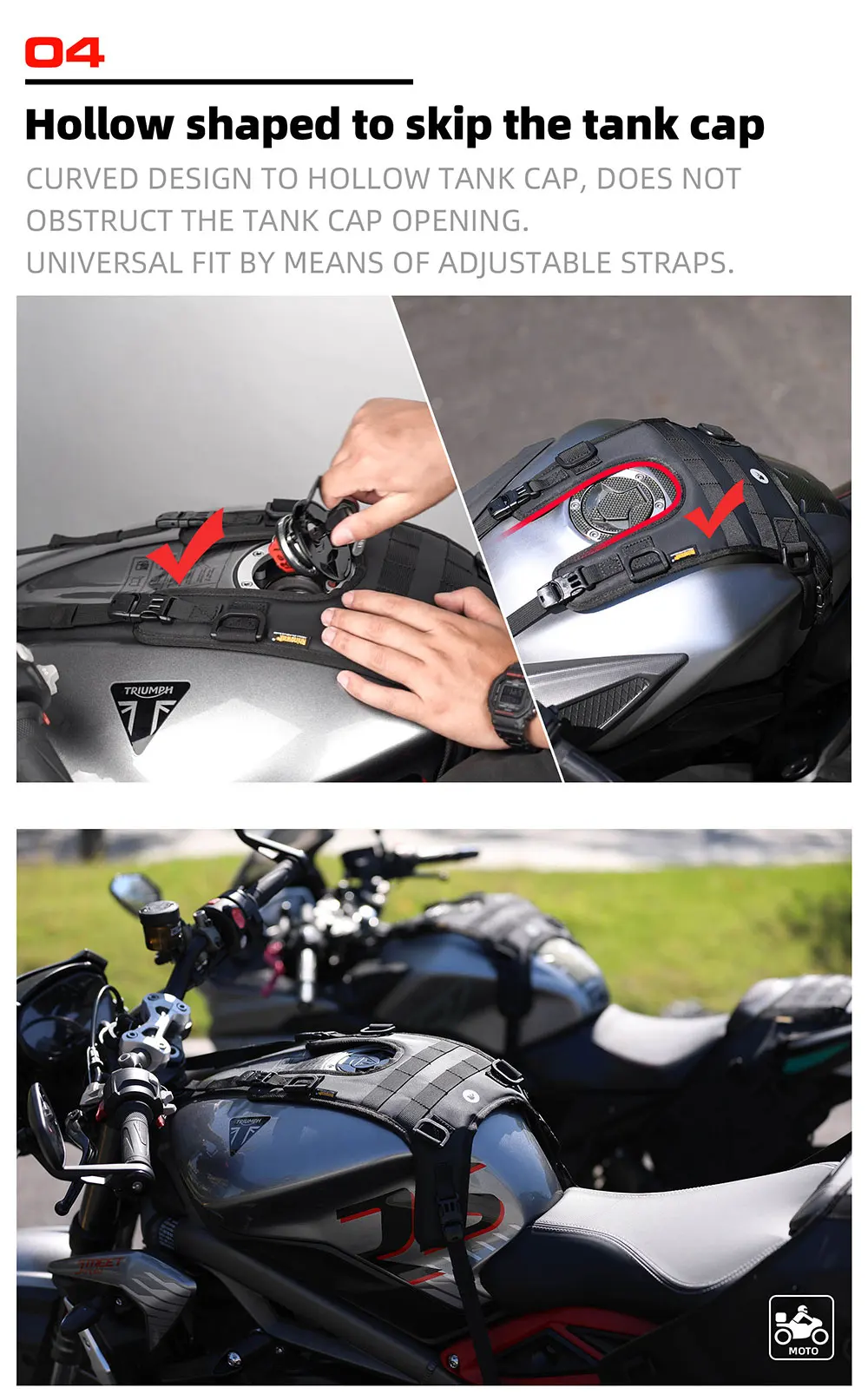 Rhinowalk摩托车油箱袋底座通用越野车便携式电机附件油箱套件安装电机前袋